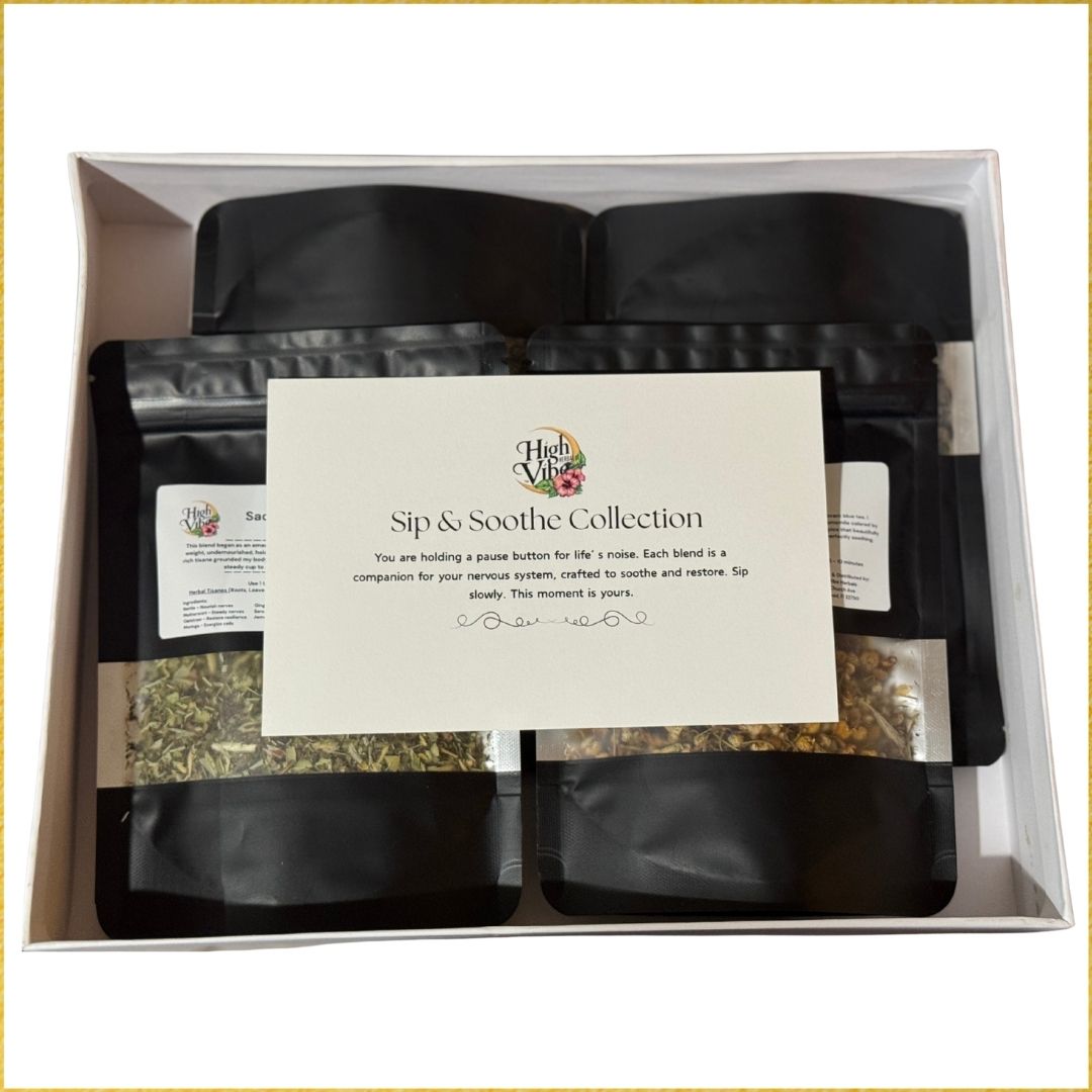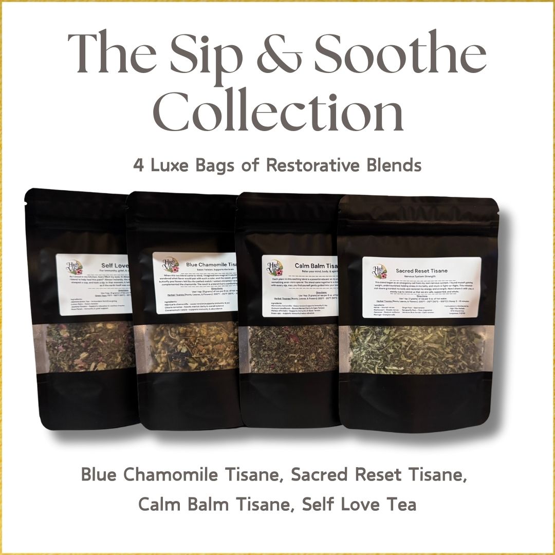 • Calm Balm Tisane – A soothing blend to ease overwhelm and help you feel emotionally grounded